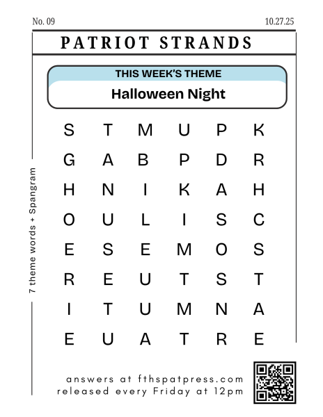 This week’s Patriot Strands is “Halloween Night.” Either download and print your own copy from the image below, or pick up a hard copy from the Patriot Press bulletin board in C-Hall.